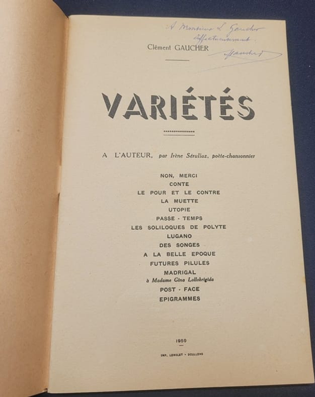 Doullens Lenglet 1959 Plaquette in8 de 36 pages - agrafé - envoi autographe signé de l'auteur en page de titre