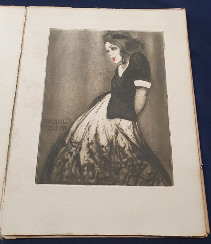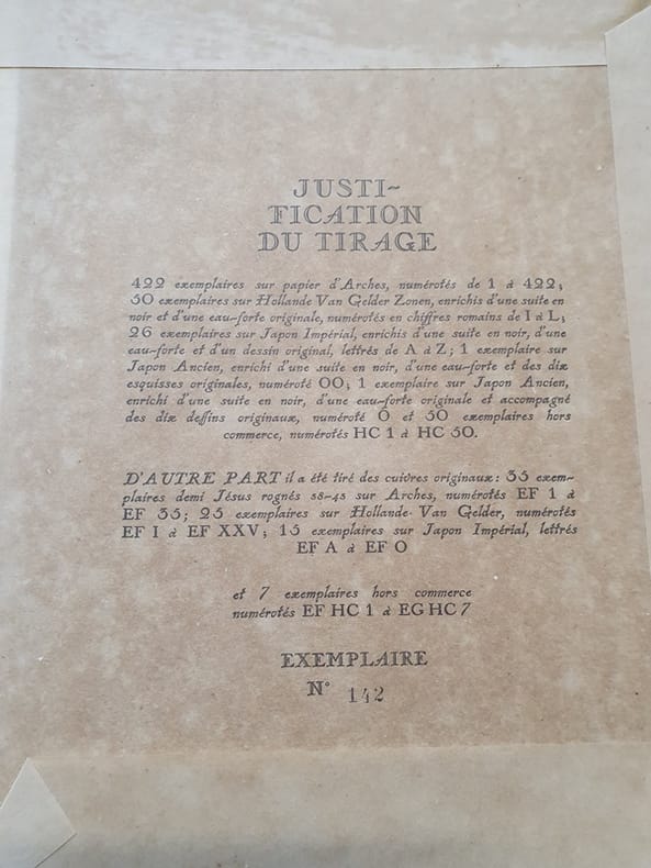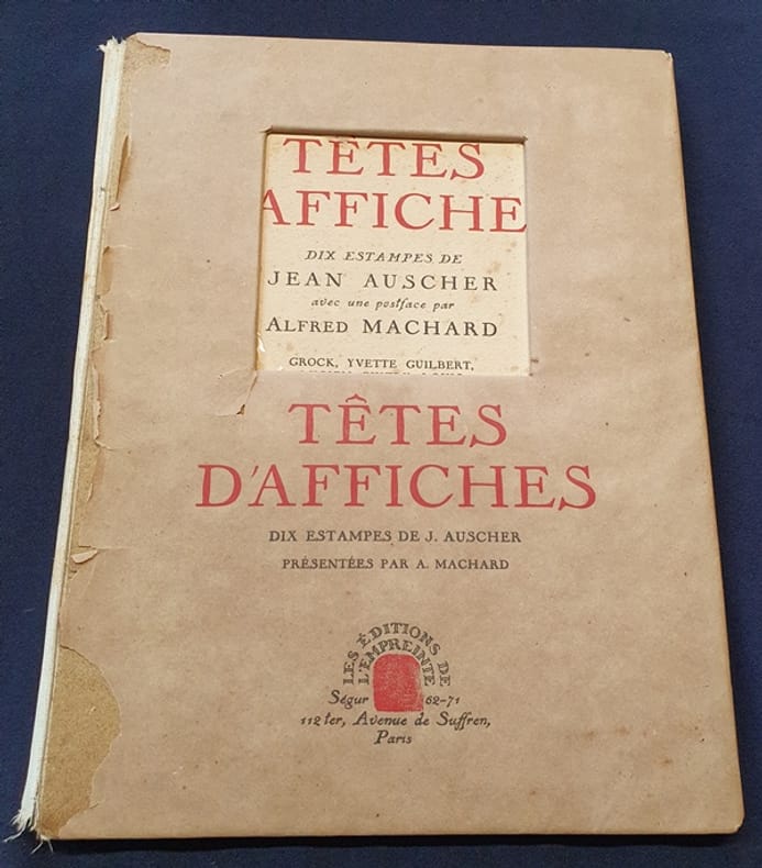 Paris Editions de l'Empreinte 1925 10 Estampes sous Port-folio illustré - Port-folio en mauvais état avec manque de papier au 1er plat et dos absent - Rousseurs sur la partie texte - 2 des estampes ont également des rousseurs ( Maud Loty et Vera Sergine ) - Exemplaire a restaurer - Complet des 10 estampes annoncées - Tirage a 500 Ex celui ci numéroté 142 sur papier d'Arches - Peu courant .