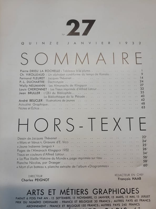 Paris Arts et métiers graphiques 1932 In4 - broché - pagination continue ( environ 66 pages ) - Bien complet des 8 planches hors texte - Sommaire voir photographies - Ouvrage totalement débroché .