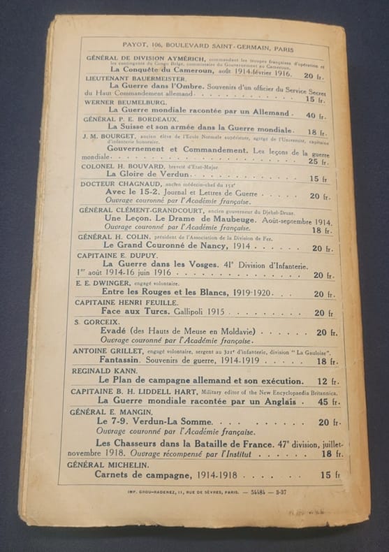 Paris Payot 1937 Grand In8 - broché - 212 pages - cartes et croquis - dos bruni et en partie recollé .