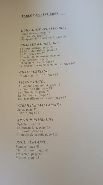 Textes et poèmes de Guillaume Apollinaire, Charles Baudelaire, Chateaubriand, Victor Hugo, Stéphane Mallarmé, Arthur Rimbaud, Paul Verlaine. Bon état d’occasion