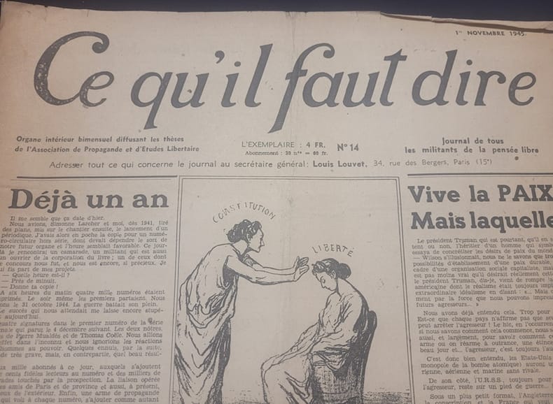 0 2 Numéros - N. 6 ( non daté ) et N. 14 du 1er Novembre 1945 - In folio - 4 pages - Ce journal eu 60 numéros de 1944 a 1948 -