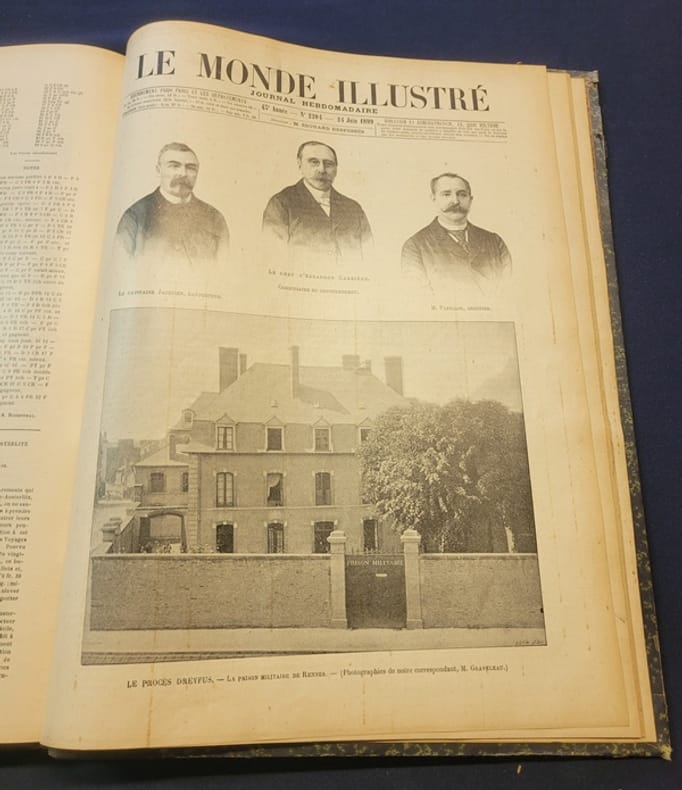 1899 In Folio - Demi basane - dos titré - Numéros 2180 des 7 Janvier 1899 au numéro 2204 du 24 Juin 1899 - 43e Année - Nombreuses photographies et gravures - Certains numéros sur la mission Marchand , d'autres sur l'affaire Dreyfus .