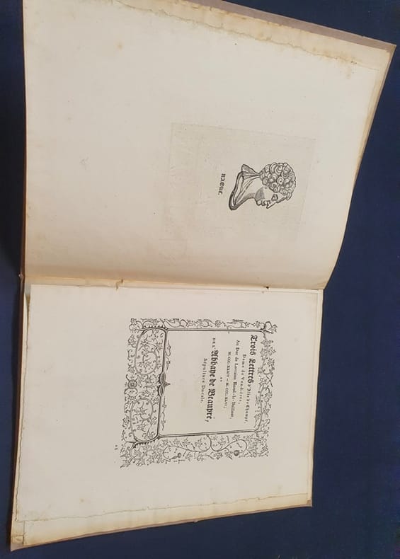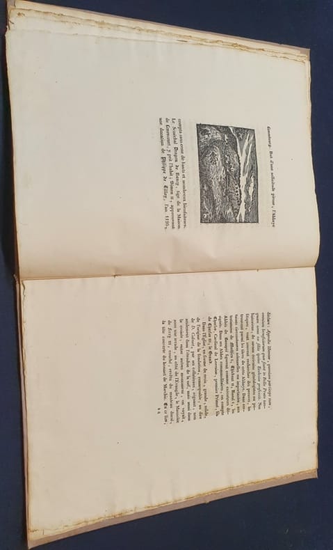 Nancy Cayon-Liebault 1838 In4 - Cartonnage de l'éditeur - Exemplaire a grandes marges sur beau papier vergé à la forme - Imprimé à 100 Exemplaires - Feuillet de la page de titre détaché - Les 18 premières pages sont consacrées aux lettres d'Alix de Champé , les 18 suivantes à l'Abbaye de Beaupré . Trés belle production comme toujours de Cayon-Liebault. Au souvenir et à l'imitation des premiers essais de l'Art Typographique en Lorraine par Pierre Jacobi à St-Nicolas-de-Port " - Superbes lettrines, portrait de Raoul en frontispice.