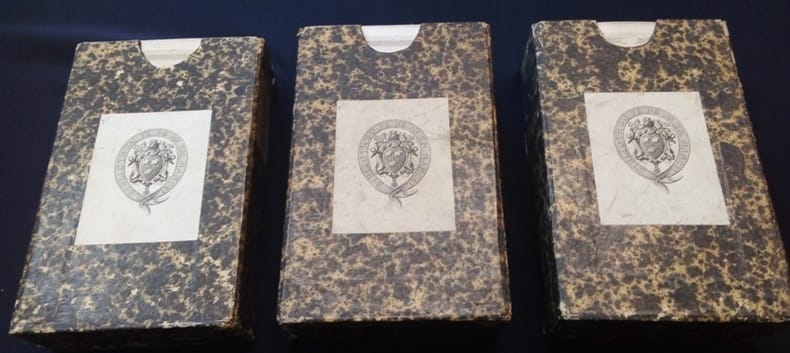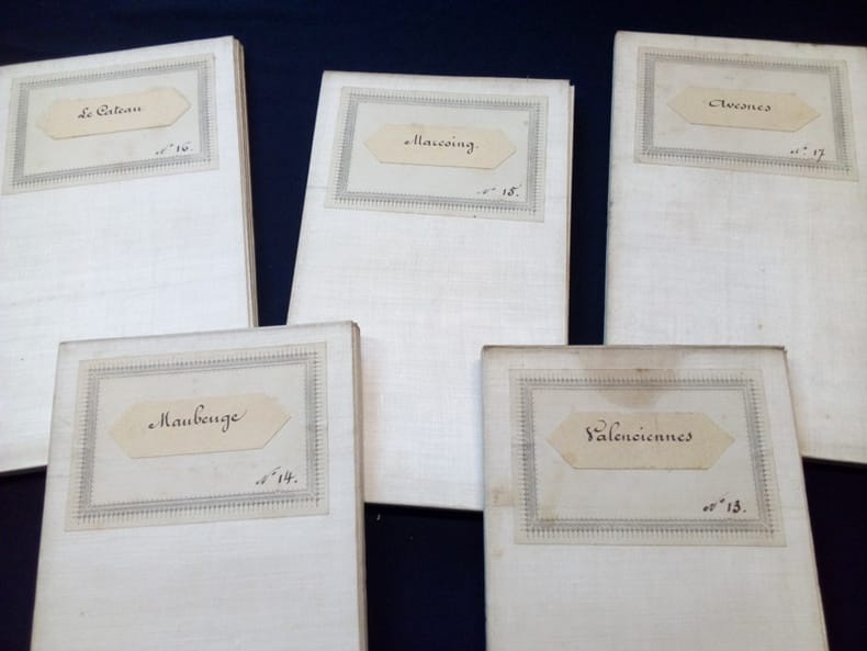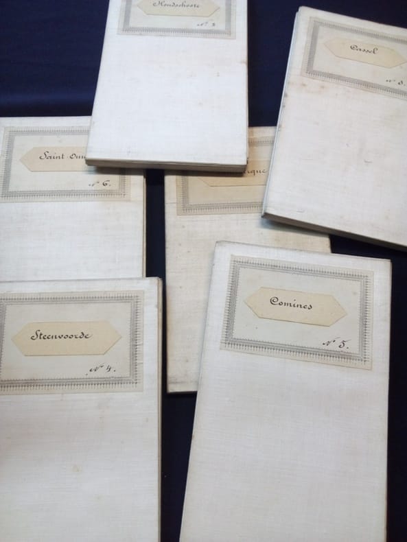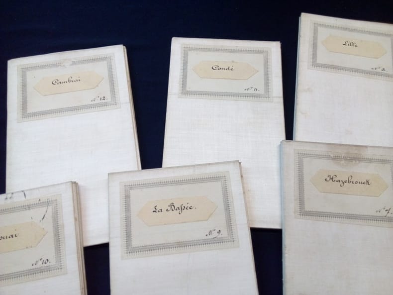 0 Ensemble de 17 cartes entoilées sous 3 emboitages Dunkerque / Hondschoote / Cassel / Stenwoorde / Comines / Saint-Omer / Hazebrouck / Lille / La Bassée / Douai / Condé / Cambrai / Valenciennes / Maubeuge / Marcoing / Le Cateau / Avesnes Chaque emboitage comporte un Ex-Libris Mr Mancel - Échelle de 1/40000 - Carte dépliée = 61 x 87 cm - Étiquette de titre sur chaque carte - Dressées par le Département du Nord entre 1874 et 1876 - Très bel état de l'ensemble .