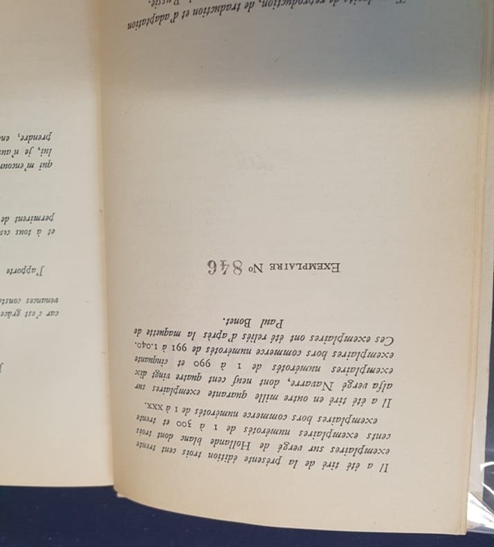 Paris Nrf Gallimard 1946 Paris - Nrf Gallimard - In12 - cartonnage éditeur d'après la maquette de Paul Bonet - 113 pages -Exemplaire sur Alfa vergé Navarre numéroté 846 - un ex-dono manuscrit en page de garde - Pas de rhodoïd , nous avons recouvert l'ouvrage par un plastique transparent - bel état