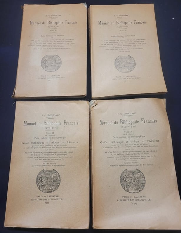 Librairie des bibliophiles 1927 Tome 1 en 2 volumes - 763 pages - décollement et petit manque de papier aux 2 coiffes du 1er volume - Nombreuses illustrations . Tome 2 en 2 volumes - 855 pages - important manque de papier a la coiffe supérieure du 2e volume . Prix pour les 4 volumes