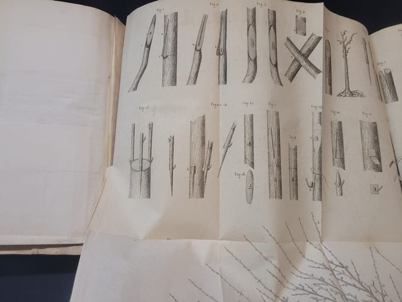 Paris, , Paris, Paris, Bouchard-Huzard, 1840; petit in-8, cartonnage bradel beige de l’époque. 2 ff., 4 pp., 272 pp., 7 planches dépliantes. Quatrième édition de ce classique qui sera souvent réedité jusqu’en 1857. Magnifiques planches dépliantes représentant les différentes formes d’arbres selon la taille.