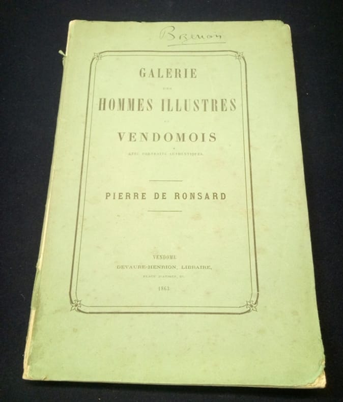 Vendôme Devaure-Henrion 1863 Grand In8 - broché - 69 pages - 1 portrait de Ronsard . Fortes mouilliures sur la gravure et manque de papier au dos .