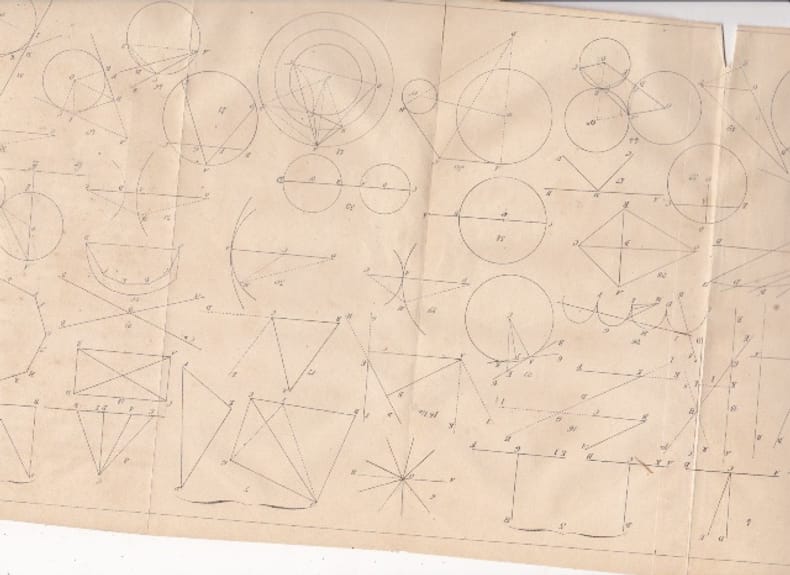 Paris Bachelier 1840 In8 4 cahiers en 1 seul volume - 68 , 80, 63 et 64 pages - 4 planches depliantes hors texte - demi basane - coins frottés - 1 ex libris non identifié - etat trés satisfaisant