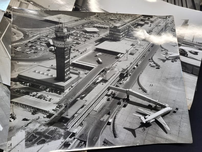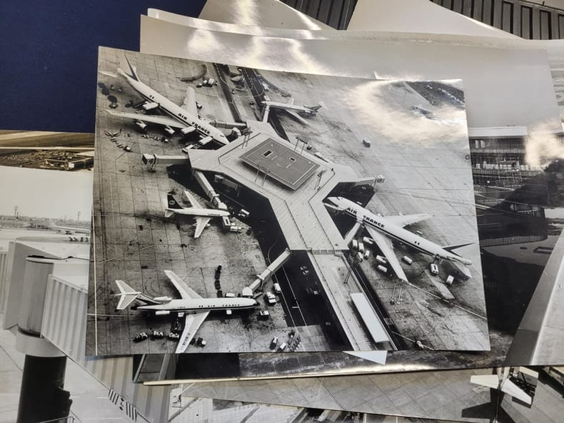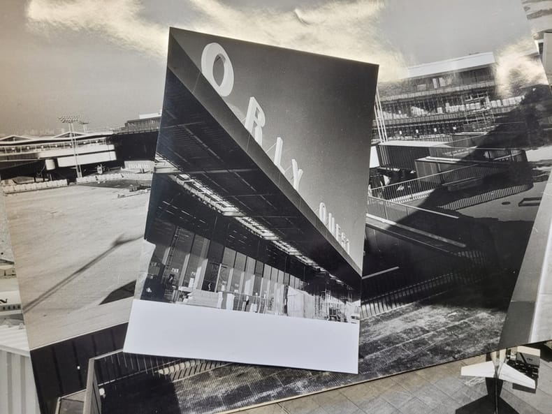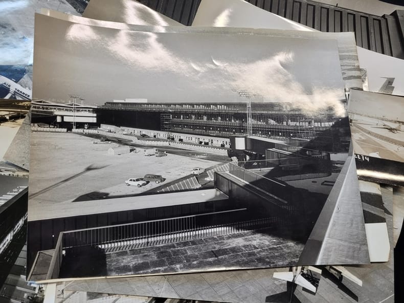 0 15 clichés noir et blanc - format divers 15 X 10 / 15 X 13 / 22,5 X 17 / 29 X 21,5 / etc... - tamponnés Aéroport de Paris plus nom du photographe pour certains ainsi que date de prise de vue au stylo pour quelques unes . L'Aéroport d'Orly est alors en phase finale des travaux d'agrandissements .