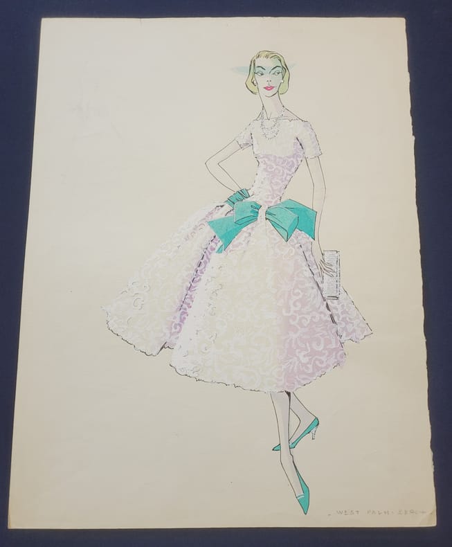 0 Format 41 X 32 cm - Crayon et aquarelle non signée - modèle appelé West Palm Beach Bob Bugnand, né Antoine Bugnand, a débuté sa carrière en créant pour Jacques Heim et Robert Piquet. Il a ouvert sa propre maison de couture à Paris dans les années 1950, puis une boutique à New York, où il était apprécié des femmes de la haute société, à la recherche de robes et de costumes sur mesure. Sa boutique produisait 50 créations originales chaque mois pour des clients privés, ce qui le rendait populaire auprès de celles qui recherchaient la mode française sans avoir à voyager outre-Atlantique. Ses costumes à la coupe élégante étaient portés par des personnalités comme Jacqueline Kennedy.