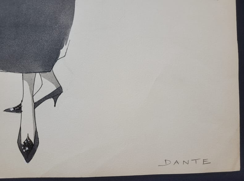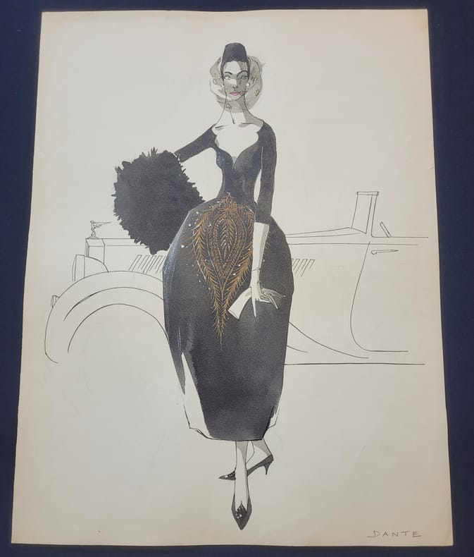 0 Format 49 X 37 cm - Crayon et aquarelle non signée - modèle appelé Dante . Bob Bugnand, né Antoine Bugnand, a débuté sa carrière en créant pour Jacques Heim et Robert Piquet. Il a ouvert sa propre maison de couture à Paris dans les années 1950, puis une boutique à New York, où il était apprécié des femmes de la haute société, à la recherche de robes et de costumes sur mesure. Sa boutique produisait 50 créations originales chaque mois pour des clients privés, ce qui le rendait populaire auprès de celles qui recherchaient la mode française sans avoir à voyager outre-Atlantique. Ses costumes à la coupe élégante étaient portés par des personnalités comme Jacqueline Kennedy.