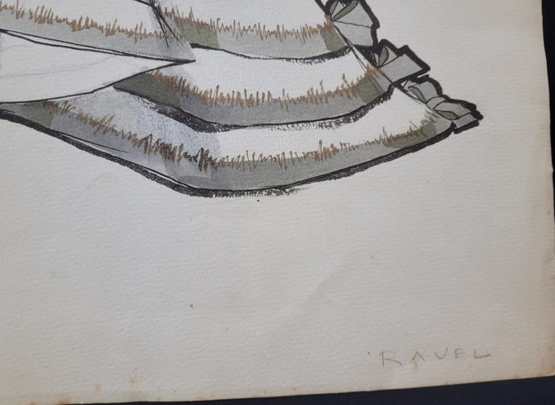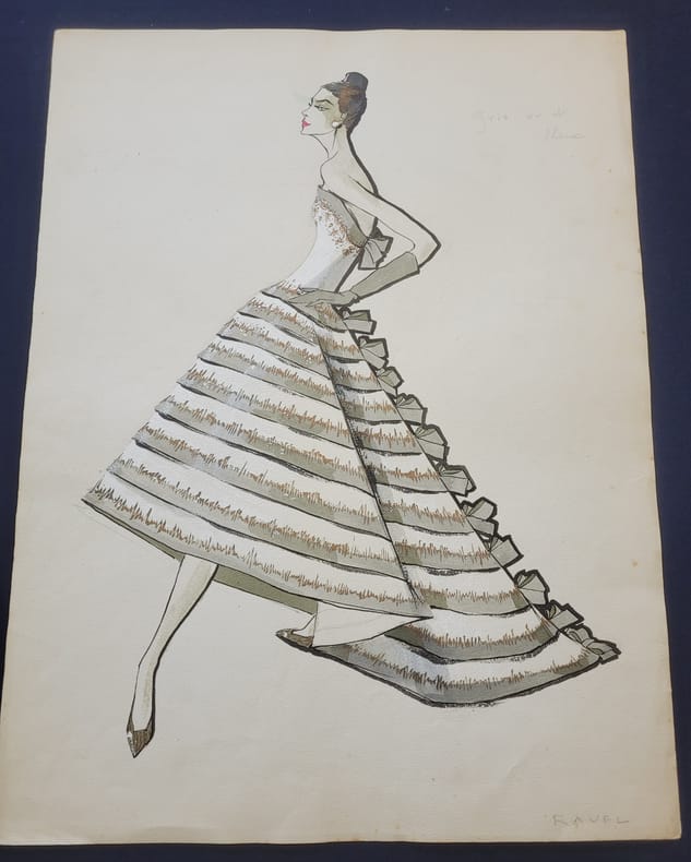 0 Format 49 X 37 cm - Crayon et aquarelle non signée - modèle appelé Ravel . Bob Bugnand, né Antoine Bugnand, a débuté sa carrière en créant pour Jacques Heim et Robert Piquet. Il a ouvert sa propre maison de couture à Paris dans les années 1950, puis une boutique à New York, où il était apprécié des femmes de la haute société, à la recherche de robes et de costumes sur mesure. Sa boutique produisait 50 créations originales chaque mois pour des clients privés, ce qui le rendait populaire auprès de celles qui recherchaient la mode française sans avoir à voyager outre-Atlantique. Ses costumes à la coupe élégante étaient portés par des personnalités comme Jacqueline Kennedy.