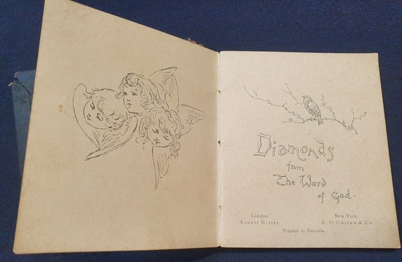 Ernest Nister 0 Petit enfantina ( 10 x 8,5 cm ) avec son enveloppe toilée - 12 pages - 4 chromolithographies comprise la couverture - sans date ( vers 1890) - peu courant