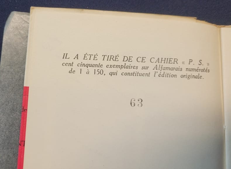 1 volume in-4° broché, couverture rempliée, 103 p. + illustrations. Tirage à 375 exemplaires numérotés. Exemplaire marqué comme exemplaire d'artiste signé par Louis Suire. Les illustrations sont en sépia. Très bel état.