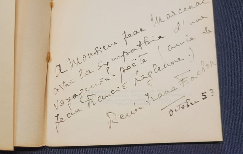 Paris Seghers 1953 Collection P.S.- In12 - broché - 43 pages - Envoi autographe signé de Renée Frachon à Jean Marcenac . Renée Frachon ( 1881/1983 ) fut une grande voyageuse et l'une des muses de Brancusi .