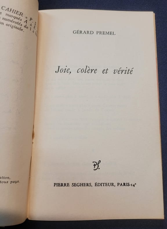 Seghers Paris, Seghers 1953. In-12 agrafé sous couverture à rabat. 36 pages. Un des 105 exemplaires sur Alfamarais numérotés constituant l'édition ordiginale (n°7). Collection Cahiers P.S n° 294. Envoi de l'auteur. Petites rousseurs sinon bon état