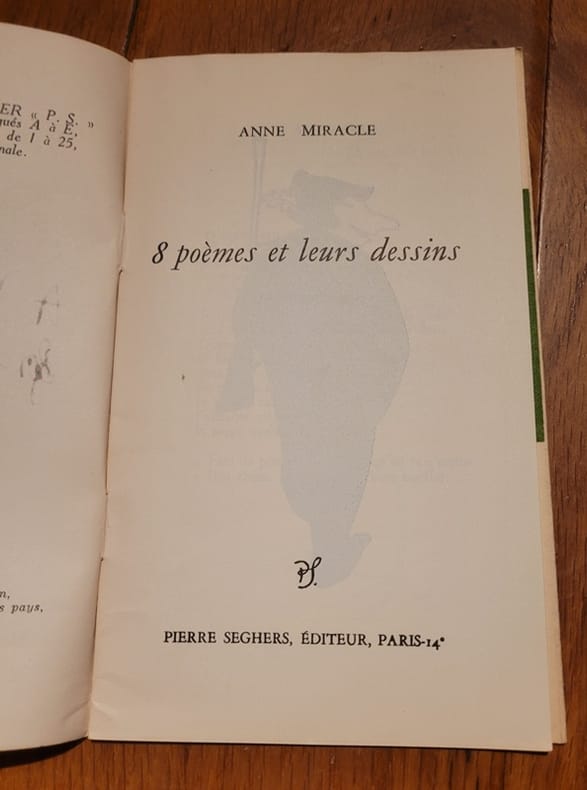 Paris Seghers, Poésie 51, coll. "PS 115" 1951 1 vol. broché plaquette in-12, brochée, couverture à rabats, 23 pp., 8 dessins en noir. Bon état.