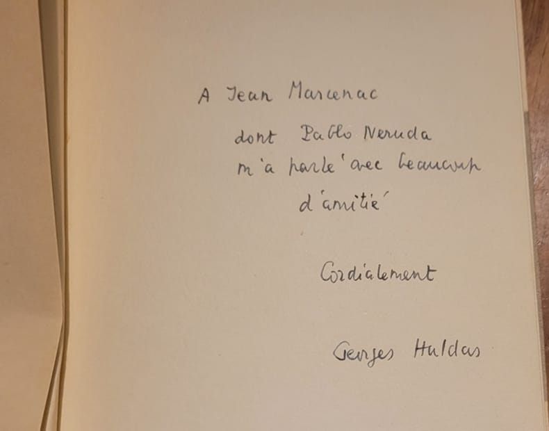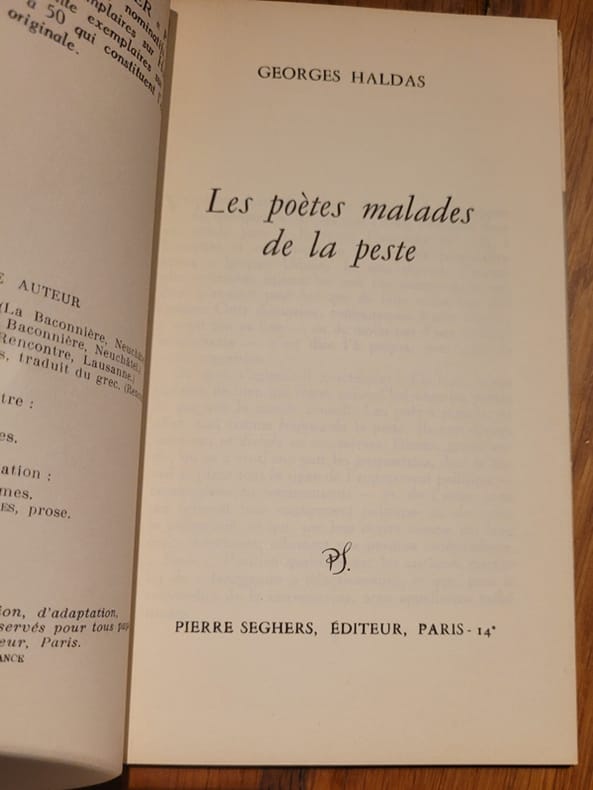 Paris Seghers 1954 Collection P.S.- In12 - broché - 51 pages - Envoi autographe signé de l'auteur à Jean Marcenac . Georges Haldas ( 1917/2010) , originaire de Grèce , passa sa vie a Genève .Il fut poète , essayiste et traducteur .