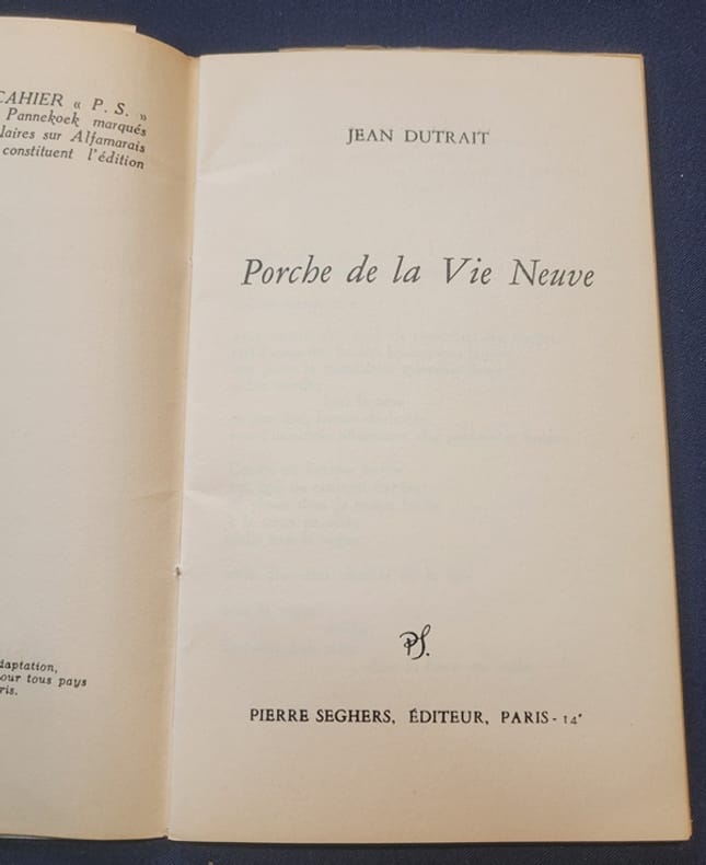 Seghers Paris, Seghers 1953. In-12 agrafé sous couverture à rabat. 50 pages. Collection Cahiers P.S n° 342. Edition originale sur papier d'édition. Bon état