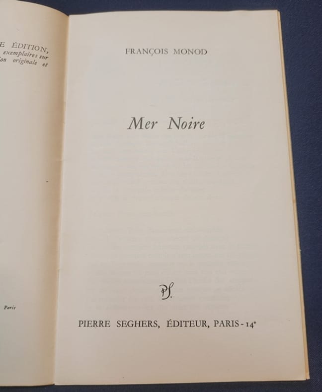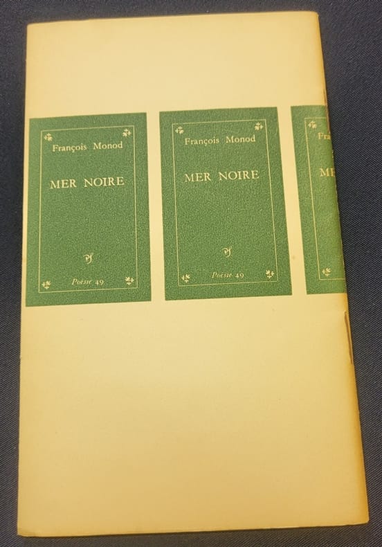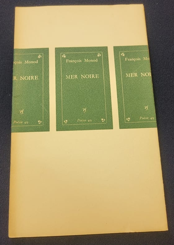Paris Seghers 1949 Collection P.S.- In12 - broché - 20 pages - Envoi autographe signé de l'auteur à Jean Marcenac . François Monod ( 1920/1941 ) fut résistant dés 1942 . De 1945 à 1948, il travailla aux côtés de Maximilien Vox, célèbre graphiste, qui dira de lui qu'il avait « le génie de la typographie ». Par la suite, il participa à la création du « Livre de poche » chez Hachette, et travailla aux éditions d'art Léda. En 1955, François Monod devint directeur littéraire des Éditeurs français réunis (EFR), maison d'édition littéraire du Parti communiste français fondée en 1950.