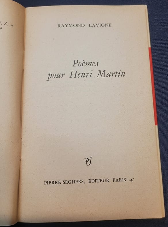 Paris Seghers 1951 Collection P.S.- In12 - broché - 30 pages - Envoi autographe signé de l'auteur à Jean Marcenac . Raymond Lavigne ( 1922/2014 ) fut reporter a l'Humanité et son directeur adjoint .