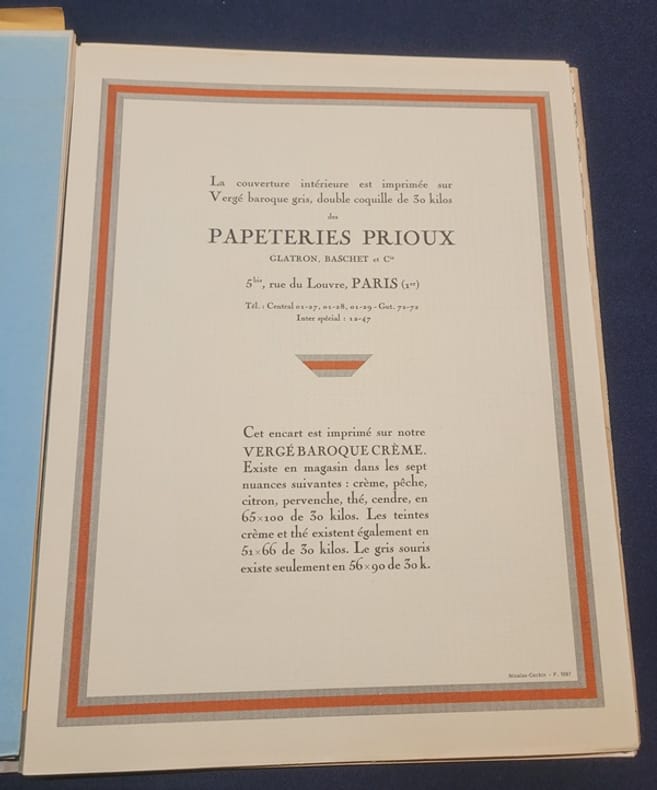 Paris, Fonderies Deberny et Peignot, 1928-1929, 22 X 28 cm., en feuilles. Sous la direction de Maximilien VOX. Beaux exemples d'impressions en couleurs.N°1 : exemplaire numéroté, feuillets en bon état sous chemise tachée et déchirée aux plis. Les sous-chemises sont entières, mais tachées. Quelques feuillets sont tachés également.N°2 : chemise et feuillets en bon état.Fascicules non collationnés, semble incomplet.