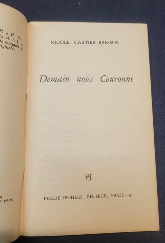 Paris Seghers 1953 Collection P.S.- In12 - broché - 45 pages - Envoi autographe signé de Nicole Cartier-Bresson a Jean Marcenac .