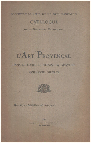 Marseille / imprimerie municipale 1929 in8. 1929. Broché. 89 pages. Etat Correct exemplaire usagé