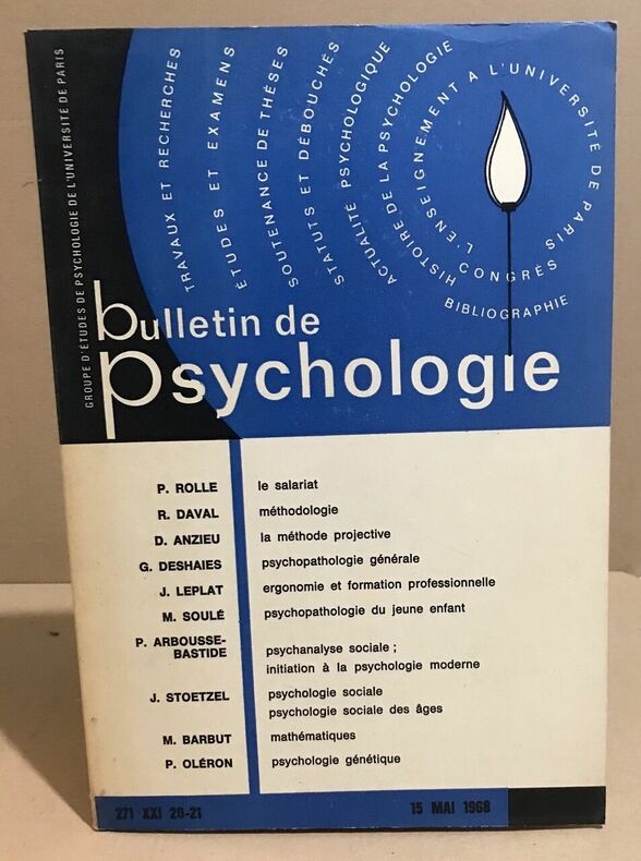 Groupe d'etudes de psychologie de l'université de 1968 in4. 1968. Broché. Bon état (BE) interieur propre