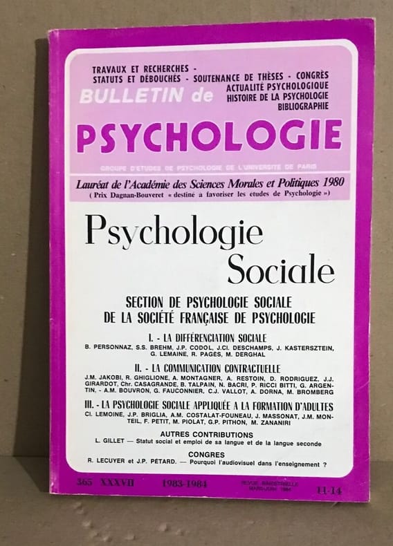 Groupe d'etudes de psychologie de l'université de 1984 grand in8. 1984. broché. Bon Etat intérieur propre