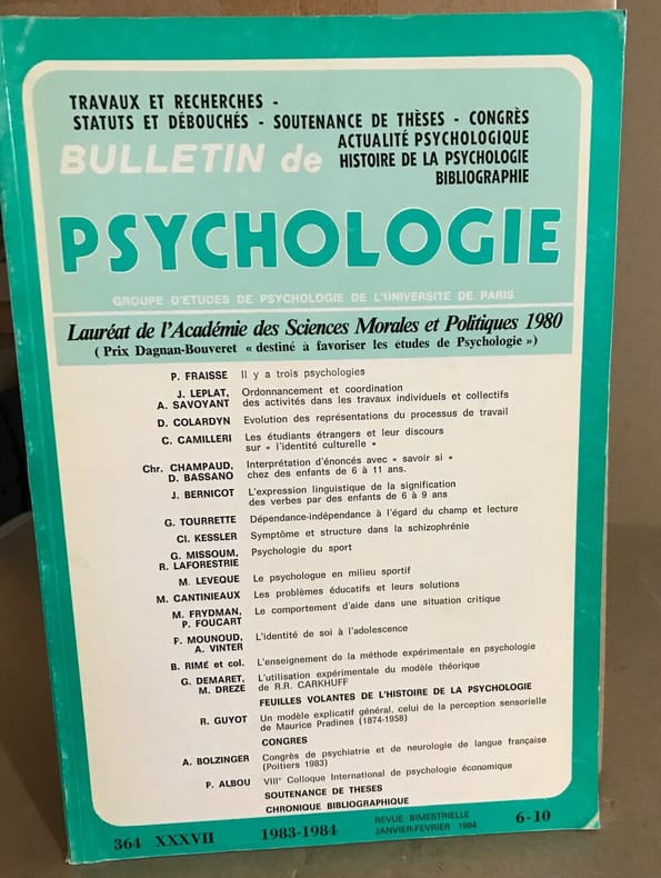 Groupe d'etudes de psychologie de l'université de 1984 grand in8. 1984. broché. Bon Etat intérieur propre