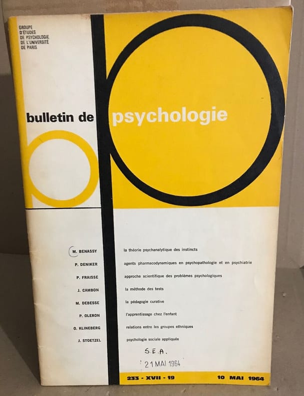 Groupe d'etudes de psychologie de l'université de 1964 grand in8. 1964. broché. Bon Etat intérieur propre