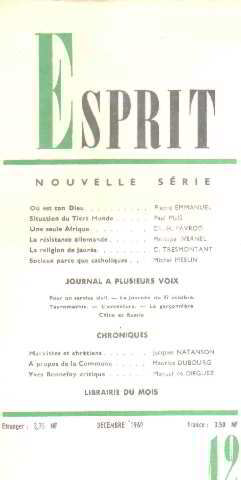 Revue esprit 1960 in8. 1960. Broché. Etat Correct exemplaire complet mais usagé