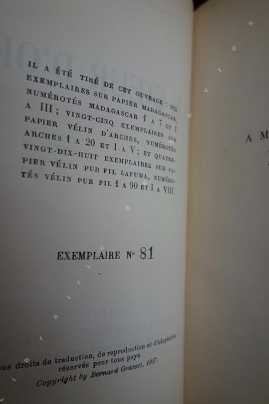 Éd. orig., un des 98 ex. num. sur pur fil, seul grand papier après 10 Madagascar et 25 Arches.