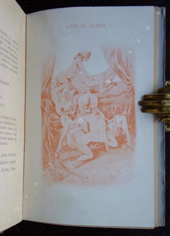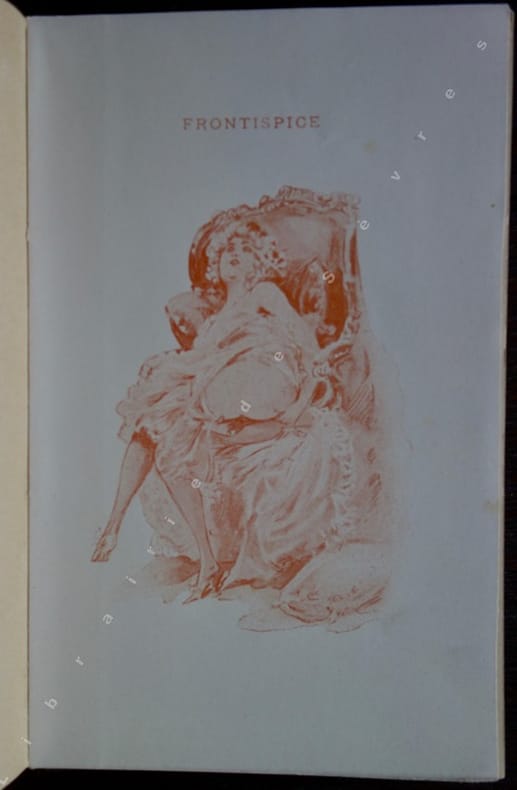 (Curiosa). "Edition non répertoriée publiée vers 1895, (...), illustrée d'un frontispice et de 6 planches libres, imprimés en sanguine sur papier vélin blanc. L'ensemble est dans le style des éditions Alphonse Lemerre. (...)". (Dutel, Bibliographie des ouvrages érotiques 1880-1920, 681).