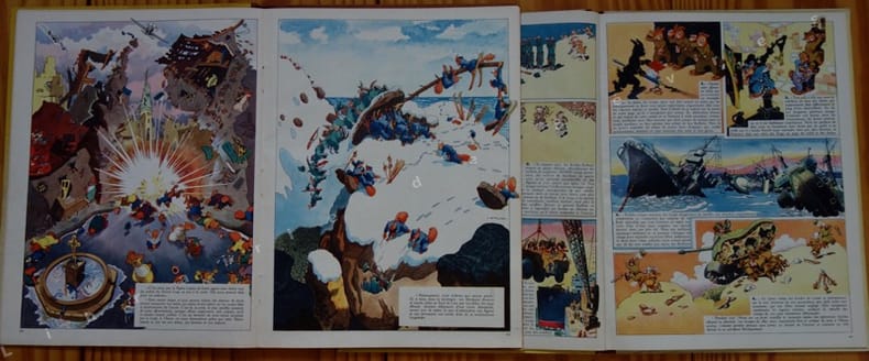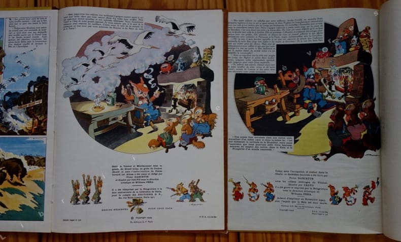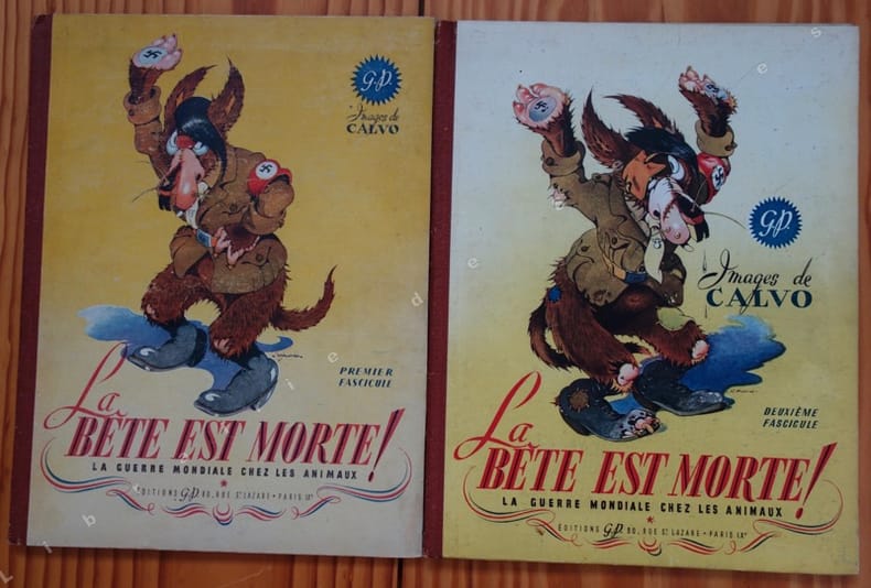 Célèbre bande dessinée par CALVO, illustrant l'histoire de la guerre transposée chez les animaux. Sans surprise, les Allemands sont des loups, leurs alliés des hyènes, des cochons, des belettes ou des singes (les Japonais), les Français et les Polonais des lapins, l'Angleterre des bouledogues, les Américains des bisons etc.