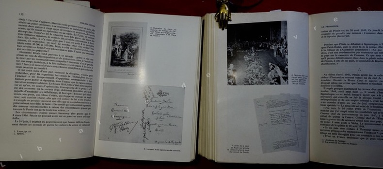 Réalisé avec les photographies provenant des albums privés du Maréchal. .......... On joint : Cel André BILLARD : Philippe Pétain chef de guerre, chef d'Etat, martyr et saint de France, 32 pages in 8° ; traces de ruban adhésif. .......... On joint : Association pour défendre la mémoire du Maréchal : Centenaire du Maréchal Pétin, 1856-1956.in 8°, 77 pages, sans la couverture ; illustrations ; traces de ruban adhésif. ...................... Photos sur demande ..........................