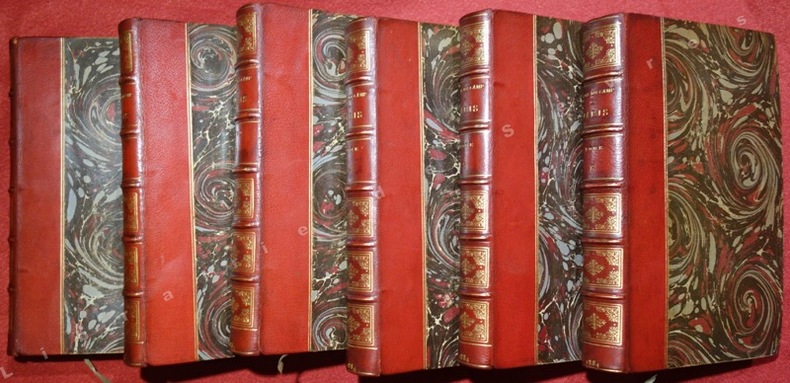 1883 Paris, Hachette et Cie, 1883-1884, 6 tomes en 6 volumes in-8, reliure de l'époque de demi-chagrin vieux rouge, dos à nerfs finement ornés de caissons dorés, têtes dorées, dates en pieds, quelques rousseurs, sinon bel ex.