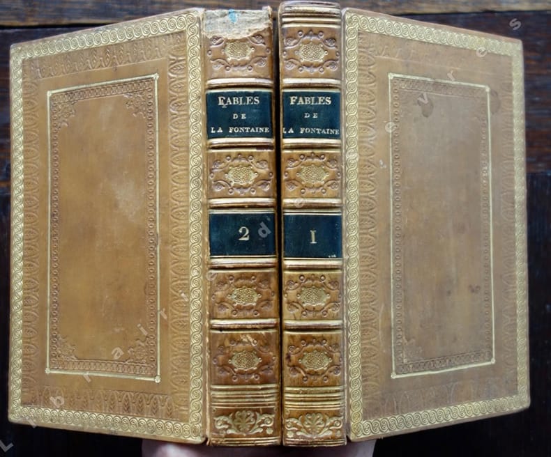 L'ouvrage s'ouvre sur un frontispice gravé et renferme par ailleurs 13 jolies planches. Jean-Pierre Claris de Florian est particulièrement connu en tant que fabuliste, ses fables étant unanimement considérées comme les meilleures après celles de Jean de la Fontaine, construites avec élégance et solidité à la fois. Les morales de certains de ses apologues sont encore citées couramment, comme «Pour vivre heureux, vivons cachés» (Le Grillon), «Chacun son métier, les vaches seront bien gardées» (Le Vacher et le Garde-chasse) ou «L'asile le plus sûr est le sein d'une mère» (La Mère, l'Enfant et les Sarigues). Quant aux expressions «éclairer sa lanterne» ou «rira bien qui rira le dernier», elles sont tirées respectivement des fables Le Singe qui montre la lanterne magique et Les deux Paysans et le Nuage. Un angle émoussé. Petites altérations superficielles éparses affectant la reliure. Contre-gardes absentes. Cerne claire en marge supérieure des derniers feuillets. Quelques rousseurs ou tâches dans le corps d'ouvrage. Du reste, belle condition.