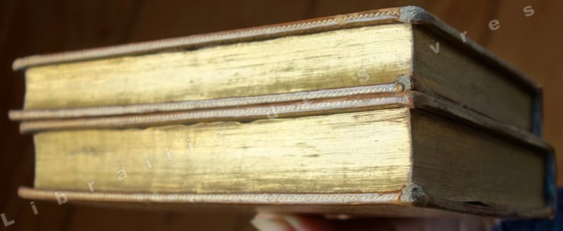 1819 Paris, Jombert, 1819, 2 tomes en 2 volumes, petits in-12 de (4)-XLVIII-210 pp. ; (4)-319 pp., élégante reliure romantique signée au dos du 1er tome "R. P. LARRIVIERE", de l'époque de plein veau glacé fauve, dos à nerfs finement pincés soulignés de filets dorés, fers romantiques à froid et dorés, plats décorés d'une succession d'encadrements de roulettes à froid et dorées, pièces de titres et de tomaisons de veau vert foncé, dentelle intérieure, intérieurs des plats et premières gardes doublés de papier parme contrecollé sur papier chamois, démarqué d'un encadrement de roulette à froid et dorée, tranches dorées, malheureusement au tome 2 la coiffe supérieure manque ainsi que le haut du dos, sinon bon exemplaire.