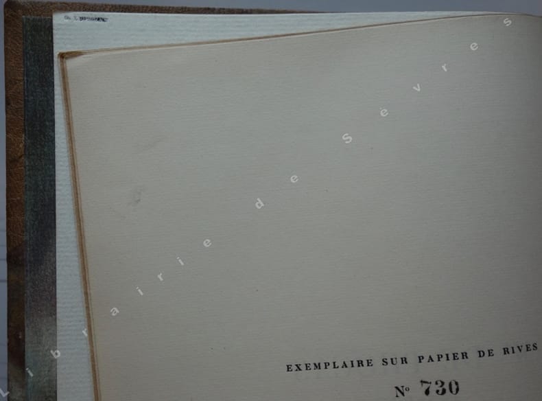 Ouvrage illustré par CHAPRONT de beaux bois gravés sur fond vert dans le texte, culs-de-lampe et en-têtes, frontispice en couleurs. Tirage à 1042 exemlplaires numérotés. Celui-ci (n°730), est un des 957 exemplaires numérotés sur Rives.