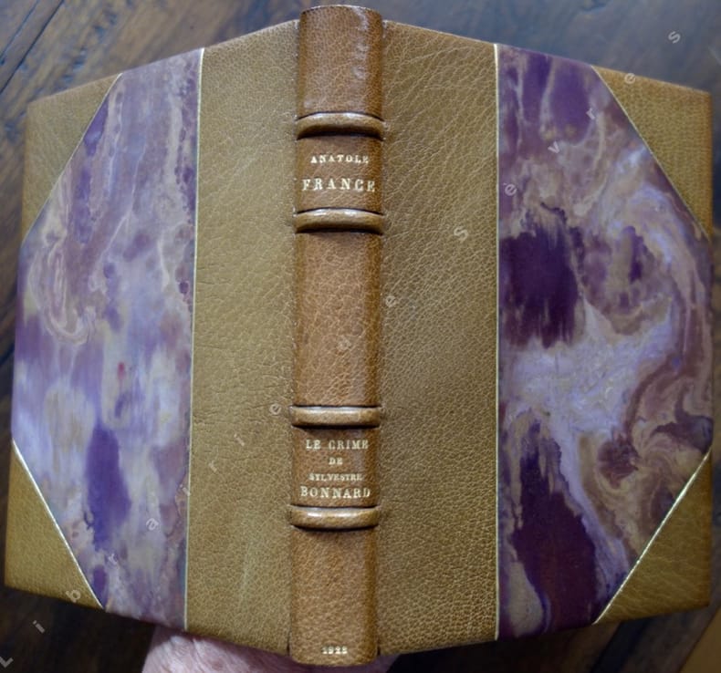 Paris Calmann-Levy 1928 In-12 (h. 19 cm.) 323 pp. couverture bleu conservée, demi-reliure à coins de papier imitation vélin, dos peint représentant une scène du roman, titre calligraphié, tête dorée.