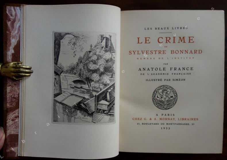 "Edition originale, N° 390 sur 927 exemplaires numérotés sur papier vélin de Rives; illustrations (bois) de Siméon."