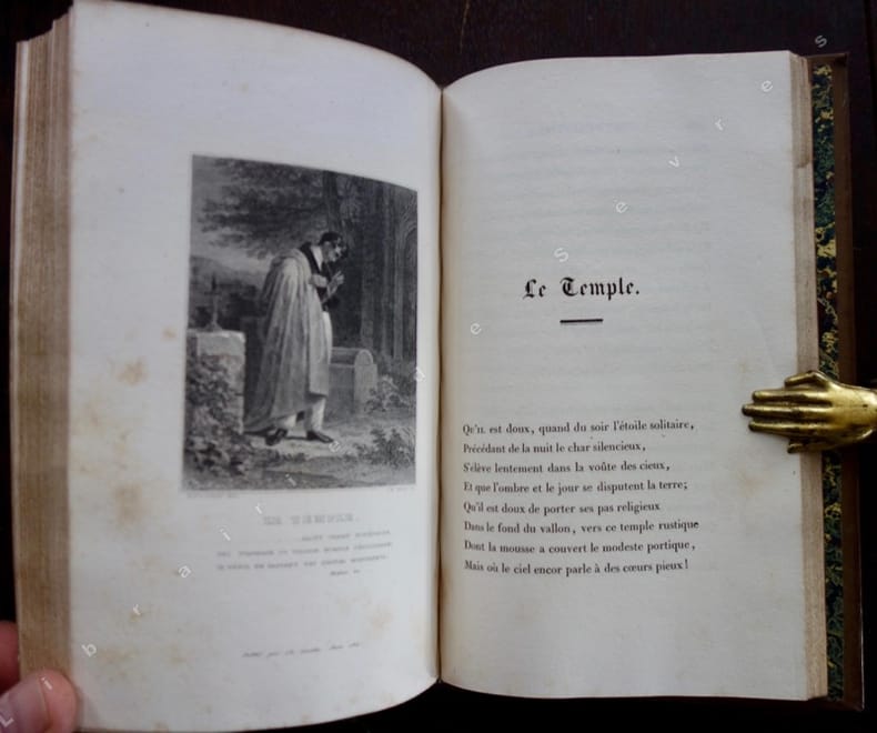 Préface de Charles Nodier en édition originale. Grande vignette gravée par H.-F. Rose sur le titre, 3 figures hors-texte par Alexander Desenne gravées par W. Ensom, et nombreuses vignettes gravées sur bois par Thompson. Les "Méditations poétiques" rendirent leur auteur célèbre et sont considérées comme la première manifestation du Romantisme en France. (Escoffier, Le mouvement Romantique ..., 346)