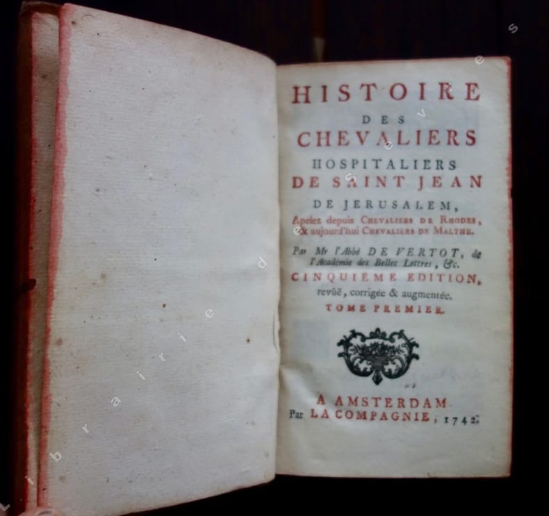 Cinquième édition. Le plus célèbre et sans doute, le meilleur ouvrage de l'historien René-Aubert de Vertot (1655-1735). L'ordre de Saint-Jean de Jérusalem, cherchait son historiographe. Et soucieux de valoriser ses annales chevaleresques, confia à l'abbé de Vertot, cet important travail de recherche. Il s'en acquitta avec le succès que l'on sait, qui ne se démentit jamais, et devint un important ouvrage de référence.