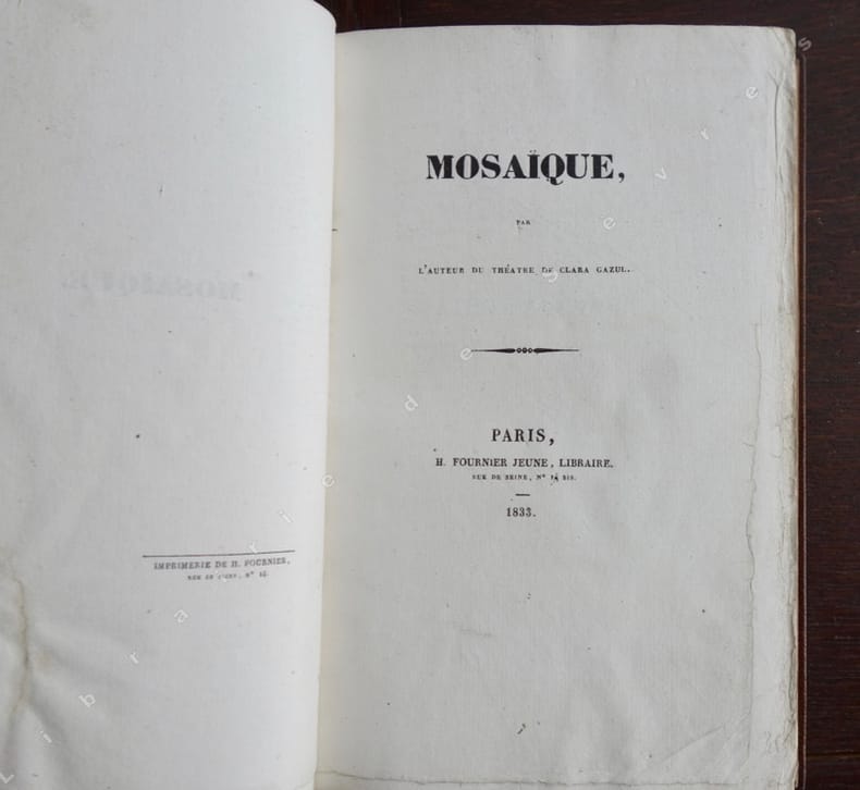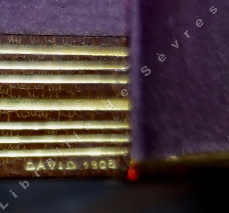 1833 Paris, H. Fournier jeune, 1833, in 8 de (4)-440 pp., très belle reliure début XXe signée de DAVID 1908, de plein maroquin brun, dos à nerfs, date en pied, titre doré, intérieur des plats et gardes doublés de papier japon lie-de-vin, double-filets dorés sur les coupes, une déchirure anciennement restaurée à la page de faux-titre, splendide exemplaire à toutes marges et sans rousseurs, dimensions des pages (22 cm x 14 cm).