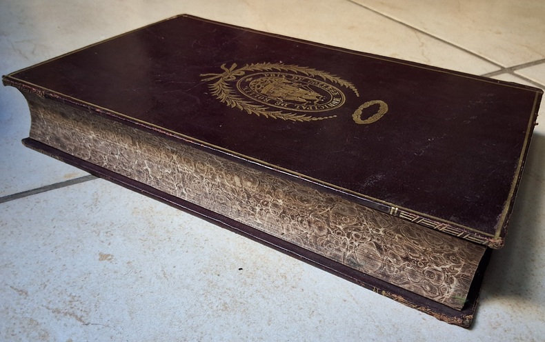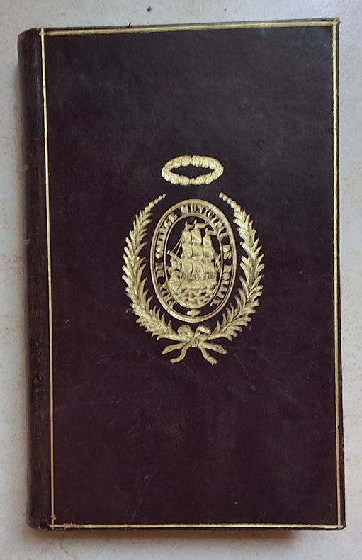 Chez Ducollet en 1841, reliure demi maroquin chocolat, dos lisse à textes, tomaison et décors or, tranches jaspées, 612 pages.
