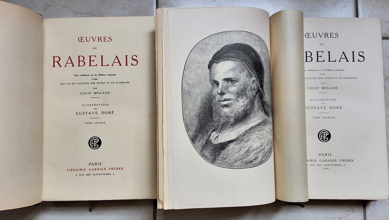Chez Garnier en 1928, 2 tomes XLVI+434 pages et 527 pages plus 6 de réclames. Reliures demi maroquin rouge, dos à nerfs textes décors floraux et caissons or, têtes dorées, signets.